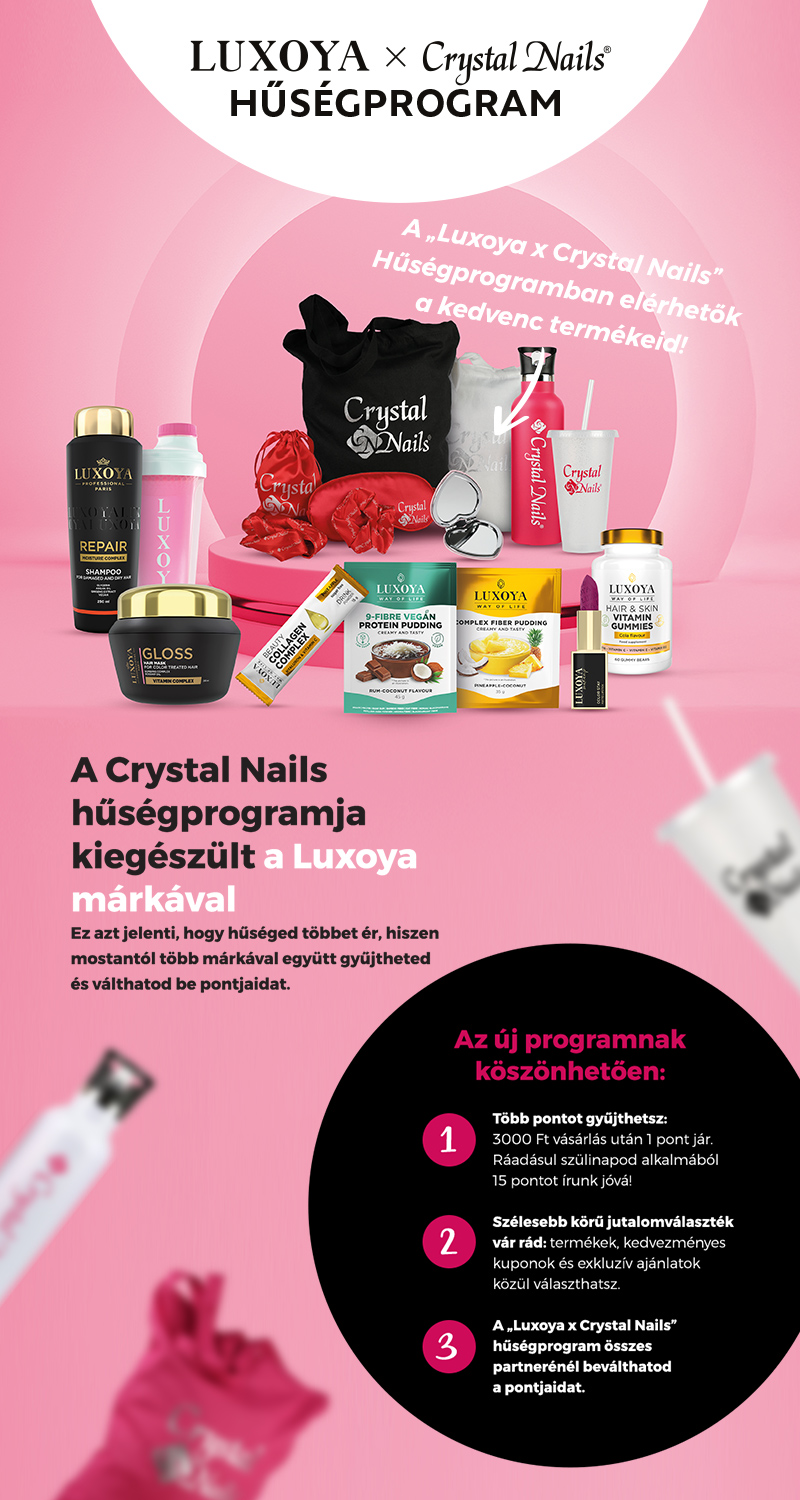 Vásárolj a crystalnails.hu weboldalán, applikációján, bármely szaküzletében vagy viszonteladóinknál, és minden elköltött 3000 Ft után 1 pontot fogunk jóváírni a számodra.