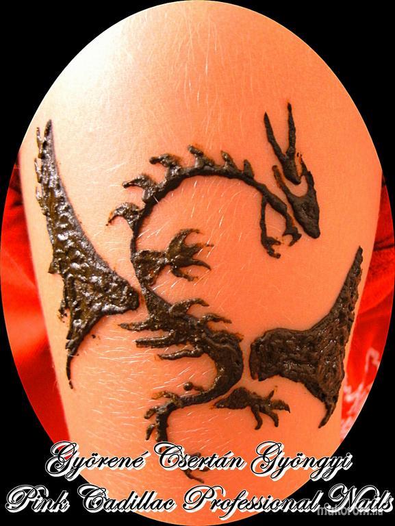 A fent látható "Henna szabadkézzel" elnevezésű műköröm minta Gyöngyi Györené Csertán, Veresegyházi műkörmös munkája. A kép 2012-05-01 16:52:20-kor került feltöltésre a Hennafestés, testfestés kategóriába sorolva, mely immáron 307 db Elite körömszalon által feltöltött köröm mintát tartalmaz. A kategóriában szereplő további műköröm minták megtekinthetőek a mukorom.hu weboldalon.