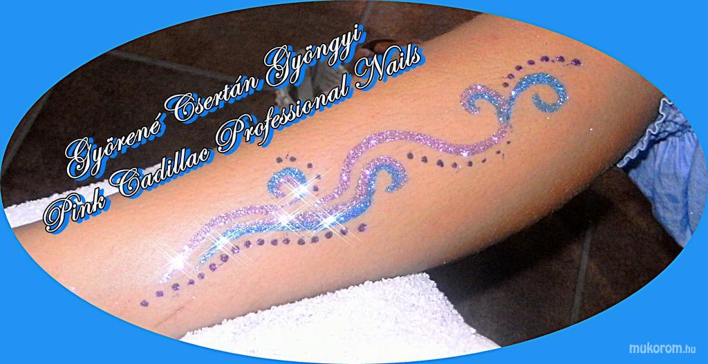 A fent látható "Csillámtetoválás szabadkézzel" elnevezésű műköröm minta Gyöngyi Györené Csertán, Veresegyházi műkörmös munkája. A kép 2012-05-02 21:35:33-kor került feltöltésre a Hennafestés, testfestés kategóriába sorolva, mely immáron 307 db Elite körömszalon által feltöltött köröm mintát tartalmaz. A kategóriában szereplő további műköröm minták megtekinthetőek a mukorom.hu weboldalon.