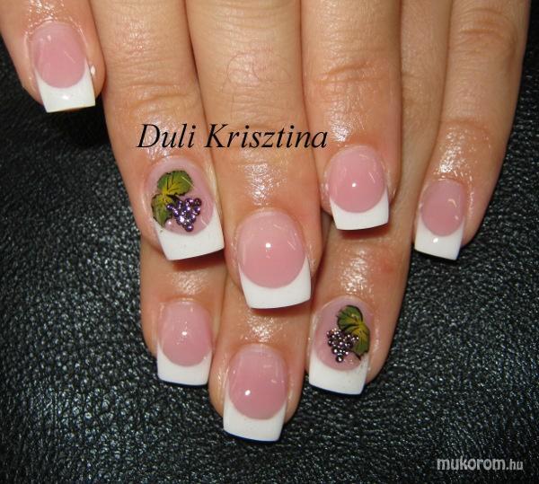 A fent látható "Zita szőlőfürtös" elnevezésű műköröm minta Duli Krisztina, Budapest 10. ker.i műkörmös munkája. A kép 2012-10-01 21:43:22-kor került feltöltésre a Akril körömdíszítés kategóriába sorolva, mely immáron 5330 db Elite körömszalon által feltöltött köröm mintát tartalmaz. A kategóriában szereplő további műköröm minták megtekinthetőek a mukorom.hu weboldalon.