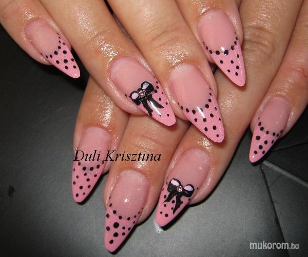 A fent látható "Trixi" elnevezésű műköröm minta Duli Krisztina, Budapest 10. ker.i műkörmös munkája. A kép 2012-10-09 13:47:45-kor került feltöltésre a Akril körömdíszítés kategóriába sorolva, mely immáron 5330 db Elite körömszalon által feltöltött köröm mintát tartalmaz. A kategóriában szereplő további műköröm minták megtekinthetőek a mukorom.hu weboldalon.