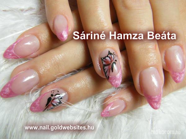 A fent látható "pillangós" elnevezésű műköröm minta Sáriné Hamza Beáta (Baross Beauty Szalon), Budapest 20. ker.i műkörmös munkája. A kép 2012-10-13 08:18:29-kor került feltöltésre a Zselés műköröm képek kategóriába sorolva, mely immáron 40450 db Elite körömszalon által feltöltött köröm mintát tartalmaz. A kategóriában szereplő további műköröm minták megtekinthetőek a mukorom.hu weboldalon.
