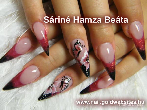 A fent látható "piros és fekete " elnevezésű műköröm minta Sáriné Hamza Beáta (Baross Beauty Szalon), Budapest 20. ker.i műkörmös munkája. A kép 2012-10-13 21:07:04-kor került feltöltésre a Zselés műköröm képek kategóriába sorolva, mely immáron 40450 db Elite körömszalon által feltöltött köröm mintát tartalmaz. A kategóriában szereplő további műköröm minták megtekinthetőek a mukorom.hu weboldalon.