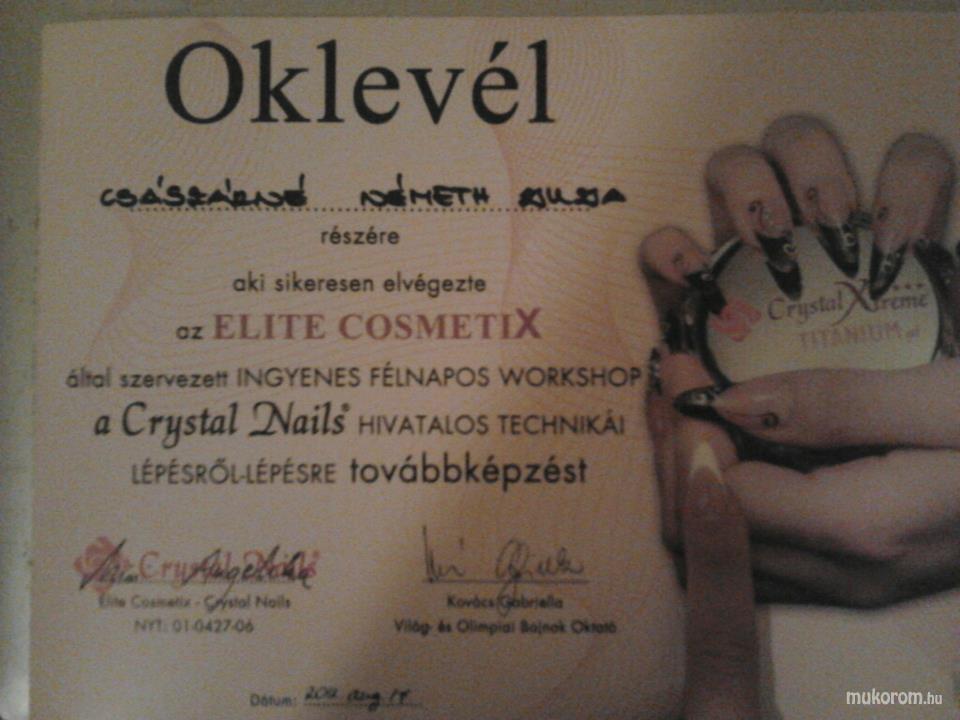 A fent látható "Továbbképzés" elnevezésű műköröm minta Császárné Németh Zsuzsa, Ecseri műkörmös munkája. A kép 2012-10-22 07:36:18-kor került feltöltésre a Képek rólam kategóriába sorolva, mely immáron 571 db Elite körömszalon által feltöltött köröm mintát tartalmaz. A kategóriában szereplő további műköröm minták megtekinthetőek a mukorom.hu weboldalon.