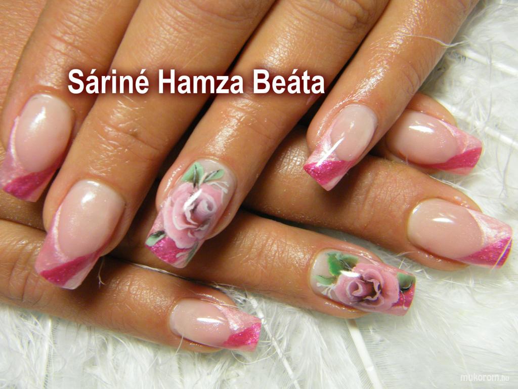 A fent látható "rózsásan" elnevezésű műköröm minta Sáriné Hamza Beáta (Baross Beauty Szalon), Budapest 20. ker.i műkörmös munkája. A kép 2012-10-31 21:39:56-kor került feltöltésre a Zselés műköröm képek kategóriába sorolva, mely immáron 40450 db Elite körömszalon által feltöltött köröm mintát tartalmaz. A kategóriában szereplő további műköröm minták megtekinthetőek a mukorom.hu weboldalon.