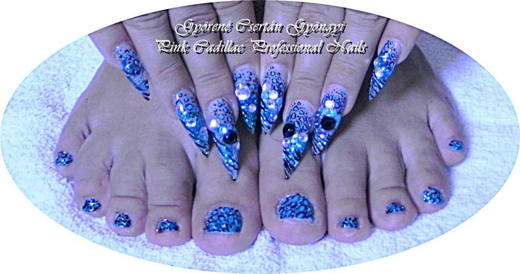 A fent látható "Kék leopárd tigris" elnevezésű műköröm minta Gyöngyi Györené Csertán, Veresegyházi műkörmös munkája. A kép 2012-11-07 21:20:42-kor került feltöltésre a Lábköröm díszítés kategóriába sorolva, mely immáron 884 db Elite körömszalon által feltöltött köröm mintát tartalmaz. A kategóriában szereplő további műköröm minták megtekinthetőek a mukorom.hu weboldalon.