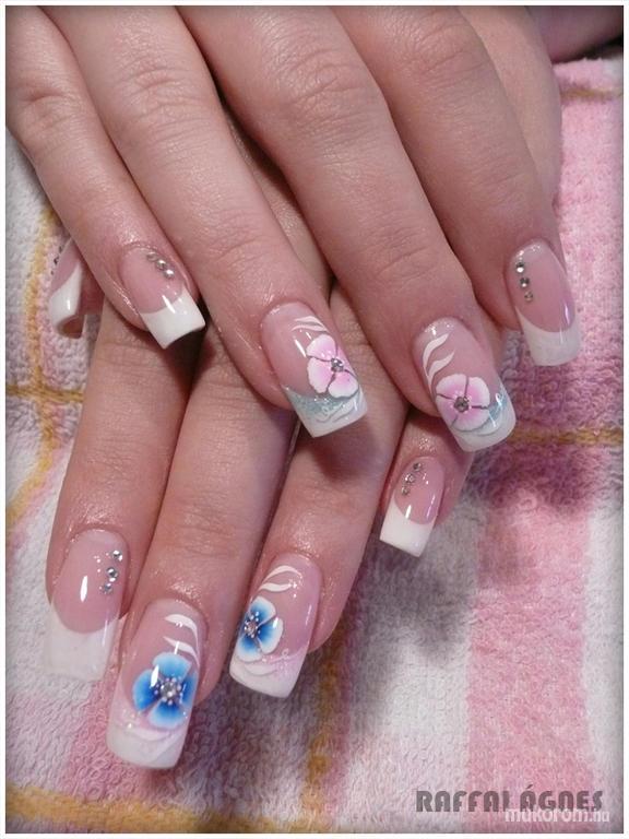 kék és rózsaszín akril díszítés - Akril körömdíszítés