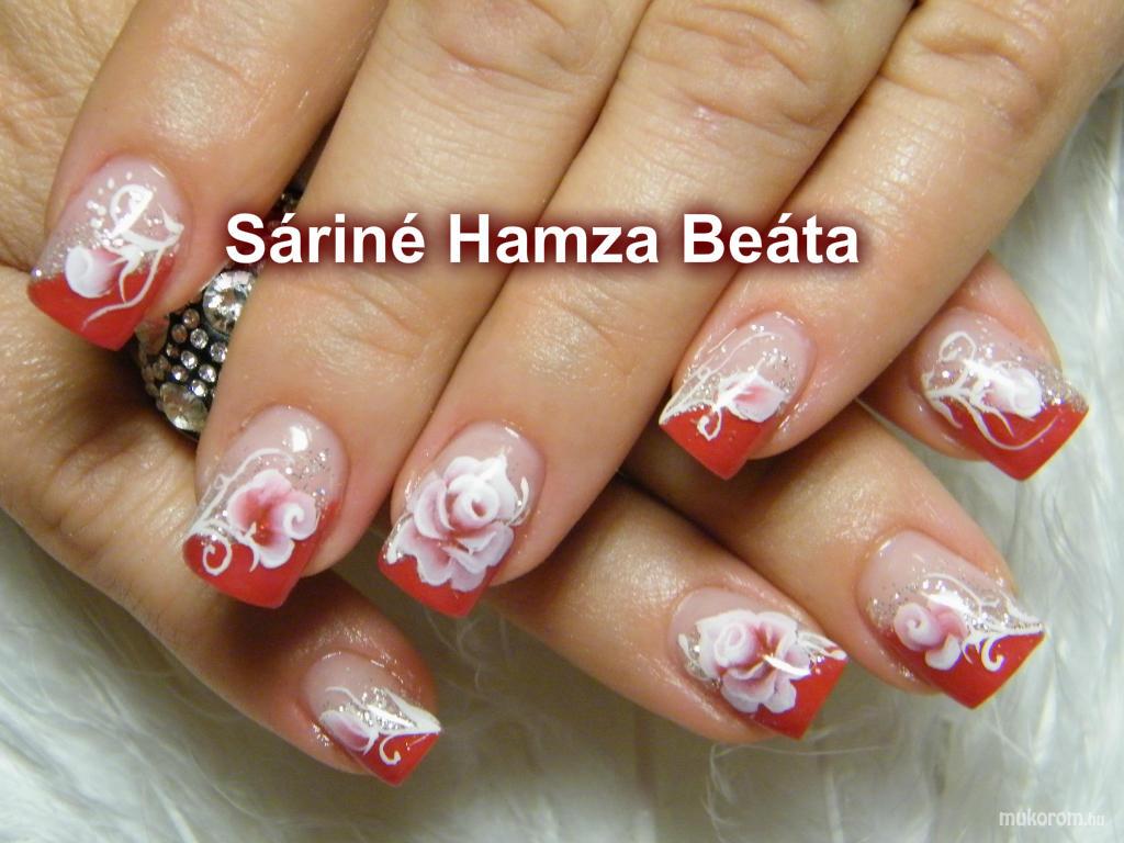 A fent látható "rózsásan" elnevezésű műköröm minta Sáriné Hamza Beáta (Baross Beauty Szalon), Budapest 20. ker.i műkörmös munkája. A kép 2012-11-17 18:26:24-kor került feltöltésre a Zselés műköröm képek kategóriába sorolva, mely immáron 40450 db Elite körömszalon által feltöltött köröm mintát tartalmaz. A kategóriában szereplő további műköröm minták megtekinthetőek a mukorom.hu weboldalon.