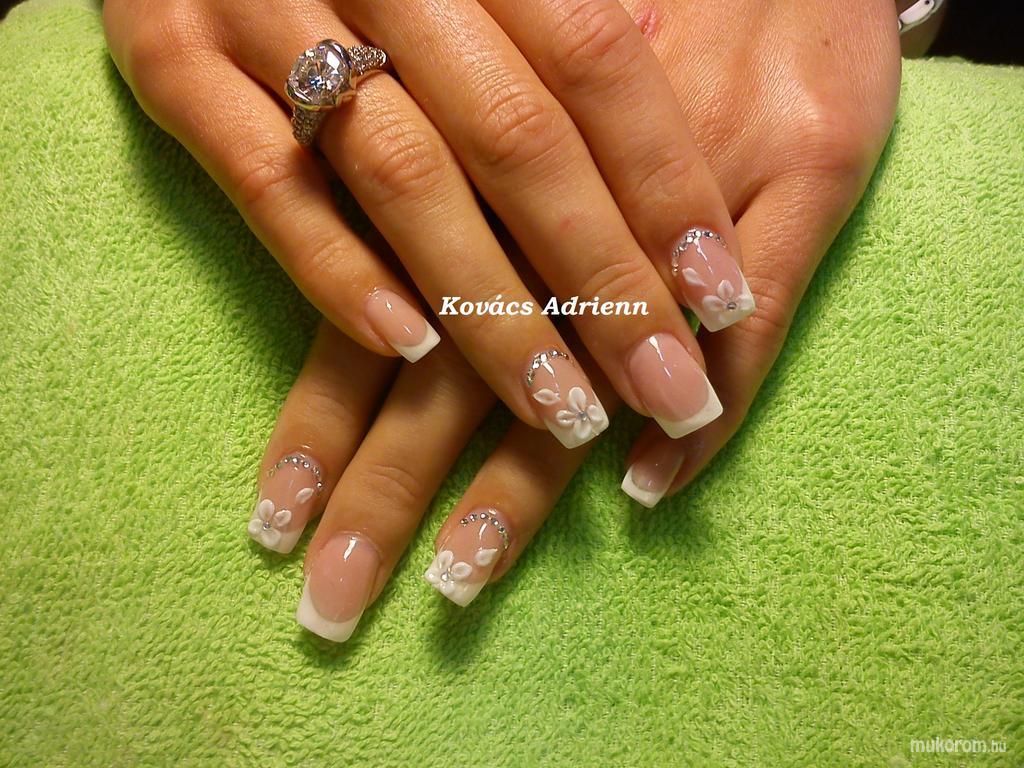 A fent látható "francia" elnevezésű műköröm minta Kovács Adrienn, Szolnoki műkörmös munkája. A kép 2012-12-04 09:36:52-kor került feltöltésre a Zselés műköröm képek kategóriába sorolva, mely immáron 40450 db Elite körömszalon által feltöltött köröm mintát tartalmaz. A kategóriában szereplő további műköröm minták megtekinthetőek a mukorom.hu weboldalon.
