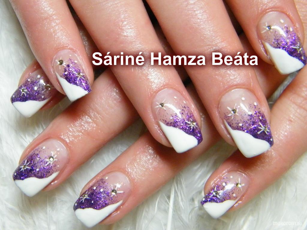 A fent látható "téliesen" elnevezésű műköröm minta Sáriné Hamza Beáta (Baross Beauty Szalon), Budapest 20. ker.i műkörmös munkája. A kép 2012-12-06 21:23:09-kor került feltöltésre a Zselés műköröm képek kategóriába sorolva, mely immáron 40450 db Elite körömszalon által feltöltött köröm mintát tartalmaz. A kategóriában szereplő további műköröm minták megtekinthetőek a mukorom.hu weboldalon.