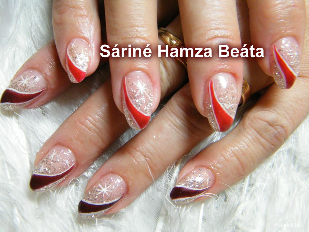 A fent látható "chameleon zselé" elnevezésű műköröm minta Sáriné Hamza Beáta (Baross Beauty Szalon), Budapest 20. ker.i műkörmös munkája. A kép 2012-12-14 21:02:44-kor került feltöltésre a Zselés műköröm képek kategóriába sorolva, mely immáron 40450 db Elite körömszalon által feltöltött köröm mintát tartalmaz. A kategóriában szereplő további műköröm minták megtekinthetőek a mukorom.hu weboldalon.