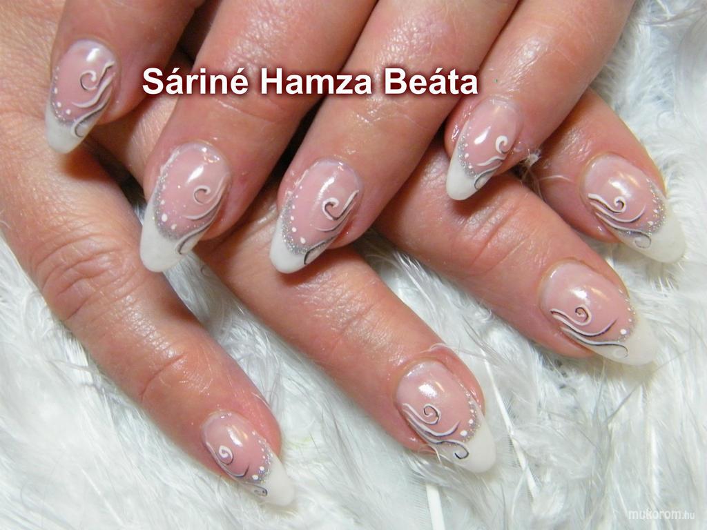 A fent látható "francia " elnevezésű műköröm minta Sáriné Hamza Beáta (Baross Beauty Szalon), Budapest 20. ker.i műkörmös munkája. A kép 2012-12-21 22:02:47-kor került feltöltésre a Zselés műköröm képek kategóriába sorolva, mely immáron 40450 db Elite körömszalon által feltöltött köröm mintát tartalmaz. A kategóriában szereplő további műköröm minták megtekinthetőek a mukorom.hu weboldalon.
