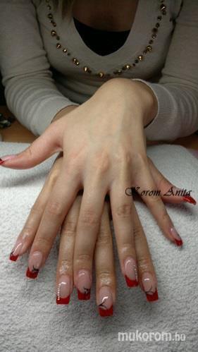 A fent látható "Piros francia" elnevezésű műköröm minta Korom Anita, Siófoki műkörmös munkája. A kép 2013-03-26 18:29:37-kor került feltöltésre a Zselés műköröm képek kategóriába sorolva, mely immáron 40450 db Elite körömszalon által feltöltött köröm mintát tartalmaz. A kategóriában szereplő további műköröm minták megtekinthetőek a mukorom.hu weboldalon.