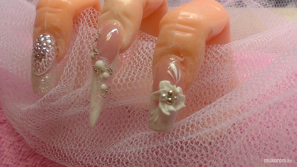 A fent látható "mennyasszonyi körömminta" elnevezésű műköröm minta Horváthné Tóth Veronika, Zalaegerszegi műkörmös munkája. A kép 2013-04-21 18:35:49-kor került feltöltésre a Esküvői műköröm minták kategóriába sorolva, mely immáron 460 db Elite körömszalon által feltöltött köröm mintát tartalmaz. A kategóriában szereplő további műköröm minták megtekinthetőek a mukorom.hu weboldalon.