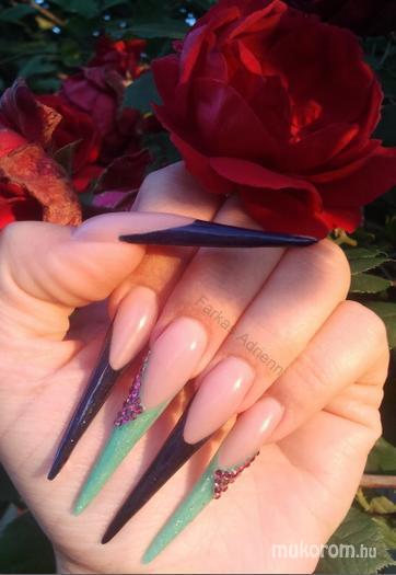 A fent látható "Stiletto" elnevezésű műköröm minta Farkas Adrienn, Budapest 16. ker.i műkörmös munkája. A kép 2013-06-09 21:15:00-kor került feltöltésre a Hegyes köröm kategóriába sorolva, mely immáron 278 db Elite körömszalon által feltöltött köröm mintát tartalmaz. A kategóriában szereplő további műköröm minták megtekinthetőek a mukorom.hu weboldalon.