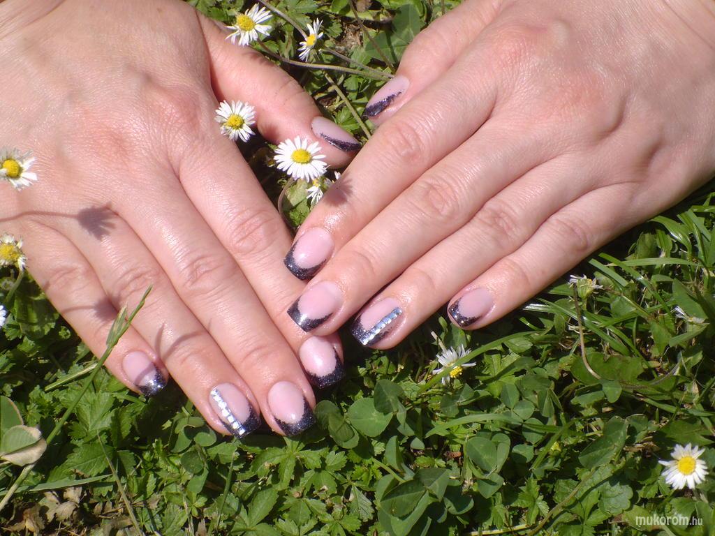 Vagány fekete csillámos francia Szandinak - Zselés műköröm képek