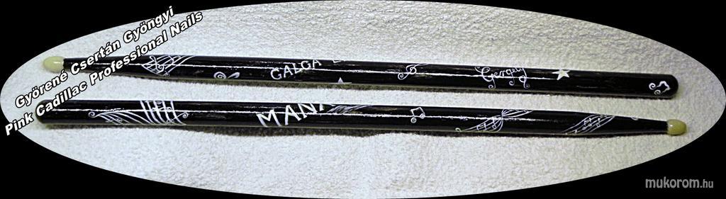 A fent látható "Dobverő díszítése" elnevezésű műköröm minta Gyöngyi Györené Csertán, Veresegyházi műkörmös munkája. A kép 2013-06-30 19:02:15-kor került feltöltésre a Ékszerek kategóriába sorolva, mely immáron 610 db Elite körömszalon által feltöltött köröm mintát tartalmaz. A kategóriában szereplő további műköröm minták megtekinthetőek a mukorom.hu weboldalon.