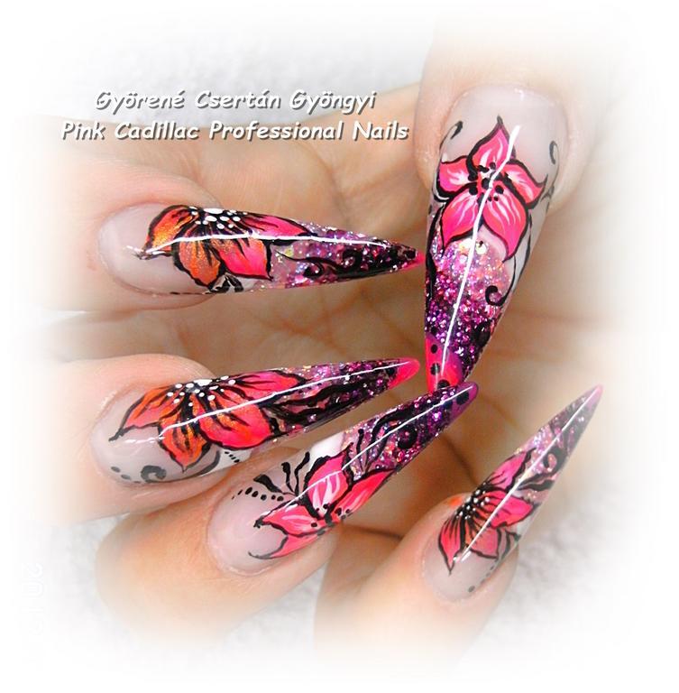 Tavaszi - Kombinált műköröm díszítés