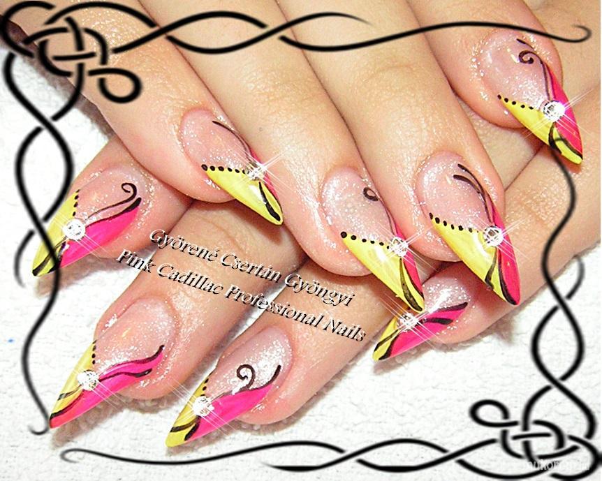 pink and yellow nails - Kombinált műköröm díszítés