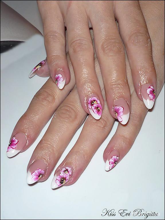 francia virággal - Akril körömdíszítés