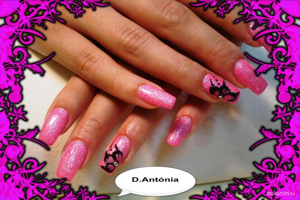 A fent látható "rozsaszin fekete virággal" elnevezésű műköröm minta Daradics Antónia, Budapest 2. ker.i műkörmös munkája. A kép 2013-07-06 14:22:25-kor került feltöltésre a Kombinált műköröm díszítés kategóriába sorolva, mely immáron 4590 db Elite körömszalon által feltöltött köröm mintát tartalmaz. A kategóriában szereplő további műköröm minták megtekinthetőek a mukorom.hu weboldalon.