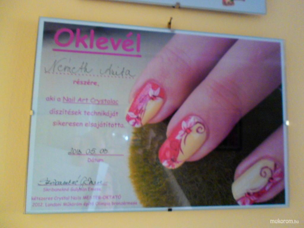 A fent látható "Továbbképzés" elnevezésű műköröm minta Németh Anita Tiszaújváros, Tiszaújvárosi műkörmös munkája. A kép 2013-08-24 17:28:06-kor került feltöltésre a Képek rólam kategóriába sorolva, mely immáron 571 db Elite körömszalon által feltöltött köröm mintát tartalmaz. A kategóriában szereplő további műköröm minták megtekinthetőek a mukorom.hu weboldalon.