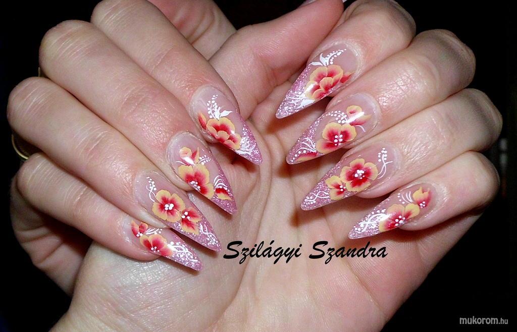 virágos - Kombinált műköröm díszítés