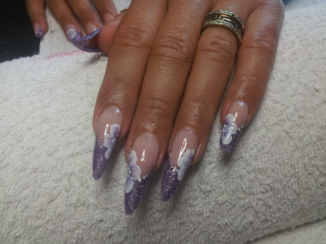 Lila virág akrillal - Akril körömdíszítés