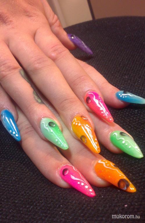 A fent látható "Sokszínű" elnevezésű műköröm minta Be-Ki Nails, Makói műkörmös munkája. A kép 2013-10-23 12:37:57-kor került feltöltésre a Hegyes köröm kategóriába sorolva, mely immáron 278 db Elite körömszalon által feltöltött köröm mintát tartalmaz. A kategóriában szereplő további műköröm minták megtekinthetőek a mukorom.hu weboldalon.