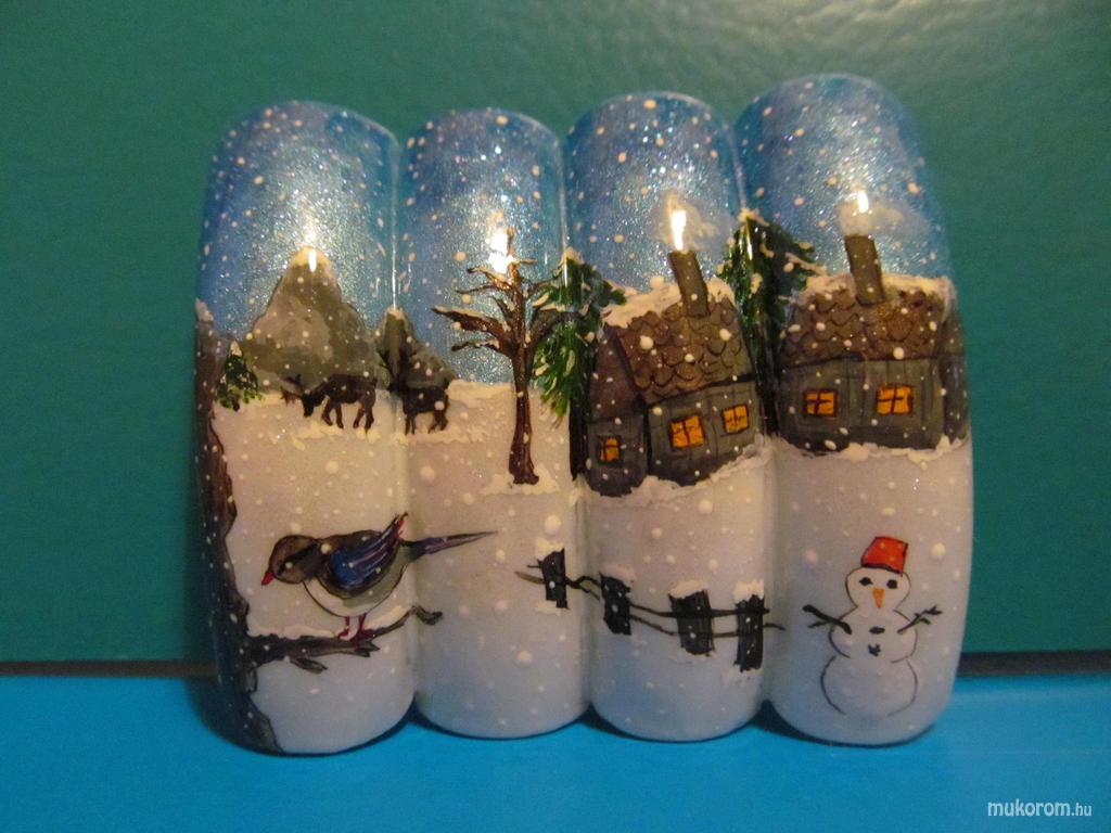 Téli minta zselé és akril mix - Akril körömdíszítés