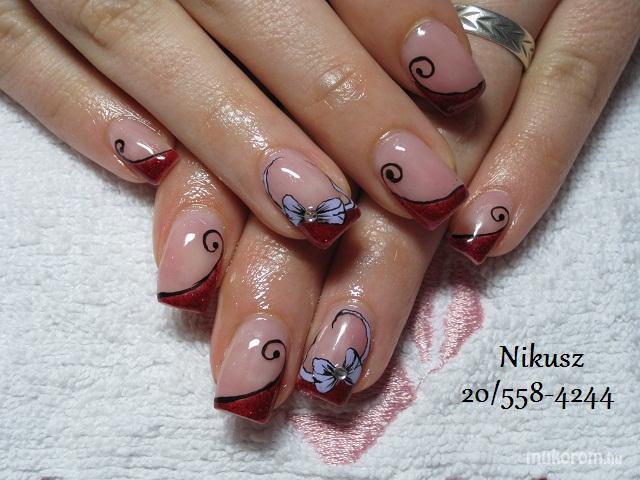 A fent látható "Masni" elnevezésű műköröm minta Perkovics Nikolett (Nikusz), Isaszegi műkörmös munkája. A kép 2014-01-22 13:56:11-kor került feltöltésre a Akril körömdíszítés kategóriába sorolva, mely immáron 5330 db Elite körömszalon által feltöltött köröm mintát tartalmaz. A kategóriában szereplő további műköröm minták megtekinthetőek a mukorom.hu weboldalon.
