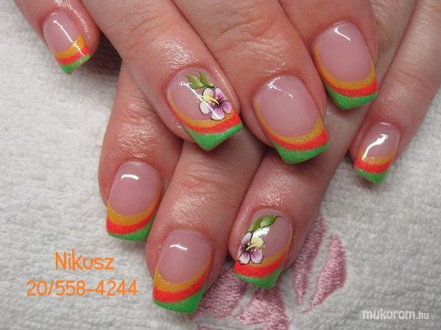A fent látható "Trópusi" elnevezésű műköröm minta Perkovics Nikolett (Nikusz), Isaszegi műkörmös munkája. A kép 2014-06-20 21:51:22-kor került feltöltésre a Akril körömdíszítés kategóriába sorolva, mely immáron 5330 db Elite körömszalon által feltöltött köröm mintát tartalmaz. A kategóriában szereplő további műköröm minták megtekinthetőek a mukorom.hu weboldalon.