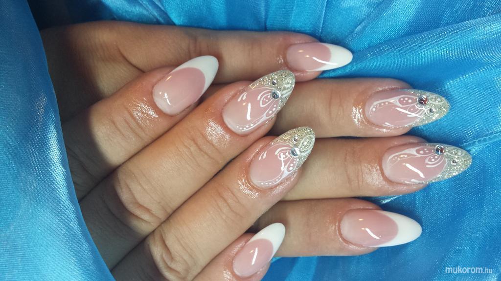 A fent látható "esküvő" elnevezésű műköröm minta Török Marianna, Budapest 21. ker.i műkörmös munkája. A kép 2014-08-08 21:22:50-kor került feltöltésre a Francia köröm minták kategóriába sorolva, mely immáron 3055 db Elite körömszalon által feltöltött köröm mintát tartalmaz. A kategóriában szereplő további műköröm minták megtekinthetőek a mukorom.hu weboldalon.
