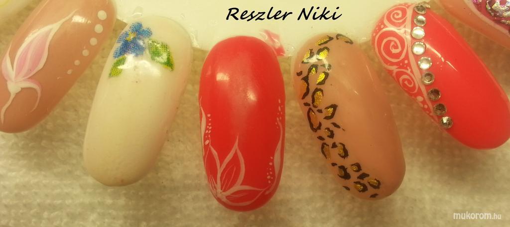 A fent látható "Díszítési lehetőségek " elnevezésű műköröm minta Reszler Nikolett, Budapest 14. ker.i műkörmös munkája. A kép 2015-01-18 11:27:48-kor került feltöltésre a Akril körömdíszítés kategóriába sorolva, mely immáron 5330 db Elite körömszalon által feltöltött köröm mintát tartalmaz. A kategóriában szereplő további műköröm minták megtekinthetőek a mukorom.hu weboldalon.