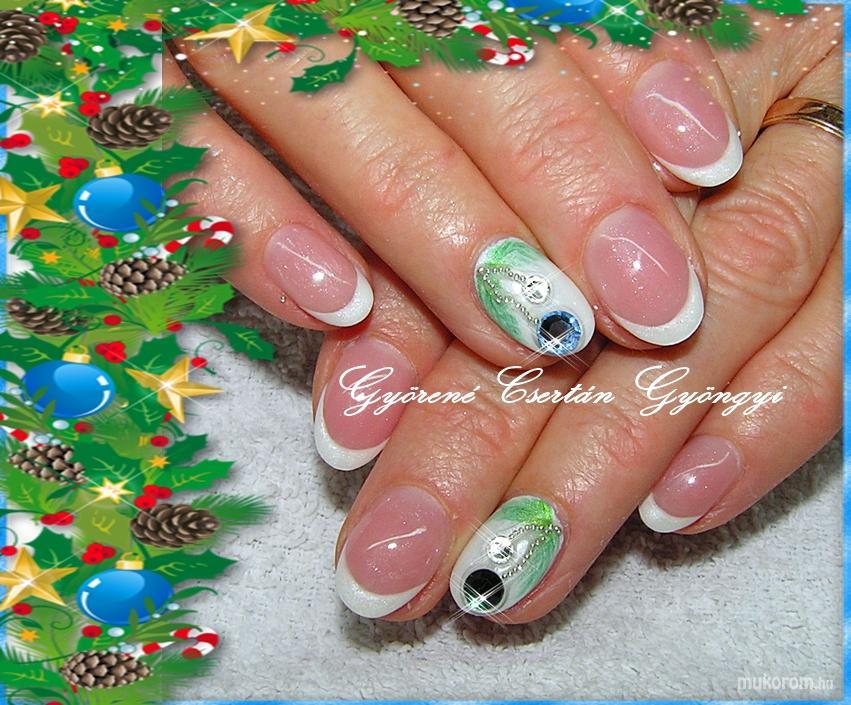 A fent látható "Christmas nails" elnevezésű műköröm minta Gyöngyi Györené Csertán, Veresegyházi műkörmös munkája. A kép 2015-01-18 11:46:41-kor került feltöltésre a Francia köröm minták kategóriába sorolva, mely immáron 3055 db Elite körömszalon által feltöltött köröm mintát tartalmaz. A kategóriában szereplő további műköröm minták megtekinthetőek a mukorom.hu weboldalon.