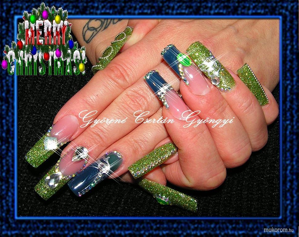 A fent látható "Christmas nails" elnevezésű műköröm minta Gyöngyi Györené Csertán, Veresegyházi műkörmös munkája. A kép 2015-01-18 11:49:51-kor került feltöltésre a Kombinált műköröm díszítés kategóriába sorolva, mely immáron 4590 db Elite körömszalon által feltöltött köröm mintát tartalmaz. A kategóriában szereplő további műköröm minták megtekinthetőek a mukorom.hu weboldalon.