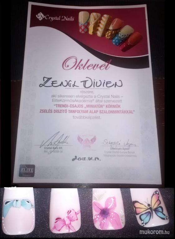 A fent látható "Tanfolyam" elnevezésű műköröm minta Zengl Vivien, Perbáli műkörmös munkája. A kép 2015-01-21 10:02:59-kor került feltöltésre a Kombinált műköröm díszítés kategóriába sorolva, mely immáron 4590 db Elite körömszalon által feltöltött köröm mintát tartalmaz. A kategóriában szereplő további műköröm minták megtekinthetőek a mukorom.hu weboldalon.