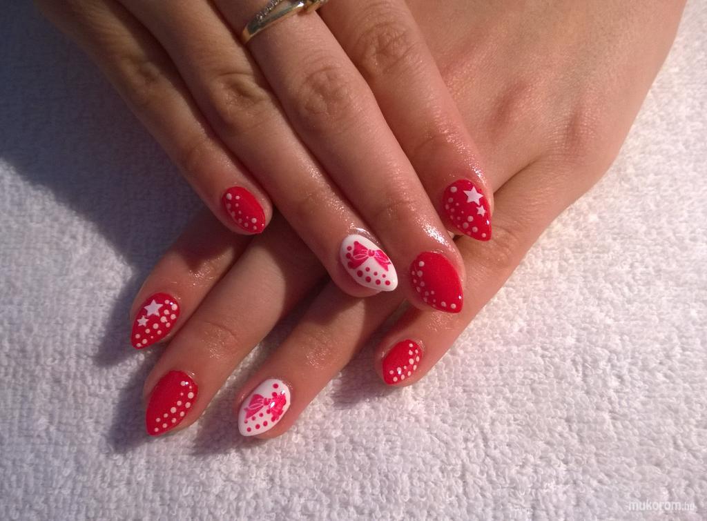 A fent látható "Karácsony 3" elnevezésű műköröm minta Bankó-Kiss Diána, Székesfehérvári műkörmös munkája. A kép 2015-02-16 13:04:54-kor került feltöltésre a Zselés műköröm képek kategóriába sorolva, mely immáron 40450 db Elite körömszalon által feltöltött köröm mintát tartalmaz. A kategóriában szereplő további műköröm minták megtekinthetőek a mukorom.hu weboldalon.