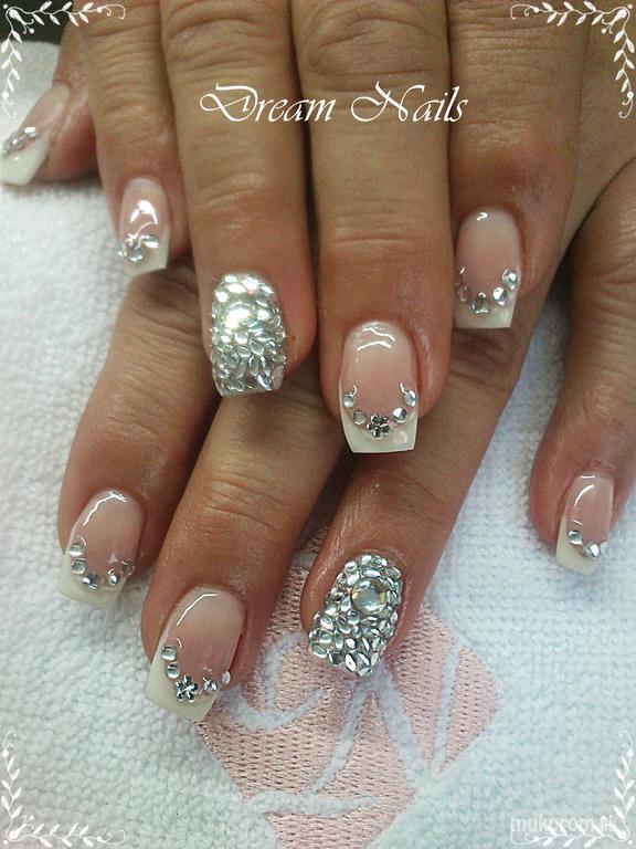 Francia egy kis strasszkővel díszítve - Esküvői műköröm minták