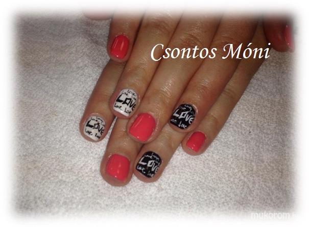 A fent látható "Love love" elnevezésű műköröm minta Huszárné Csontos Mónika, Üllői műkörmös munkája. A kép 2015-05-06 11:47:39-kor került feltöltésre a Gél Lakk kategóriába sorolva, mely immáron 16634 db Elite körömszalon által feltöltött köröm mintát tartalmaz. A kategóriában szereplő további műköröm minták megtekinthetőek a mukorom.hu weboldalon.