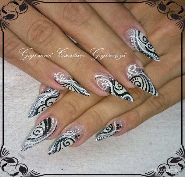 Black and white nail - Kombinált műköröm díszítés