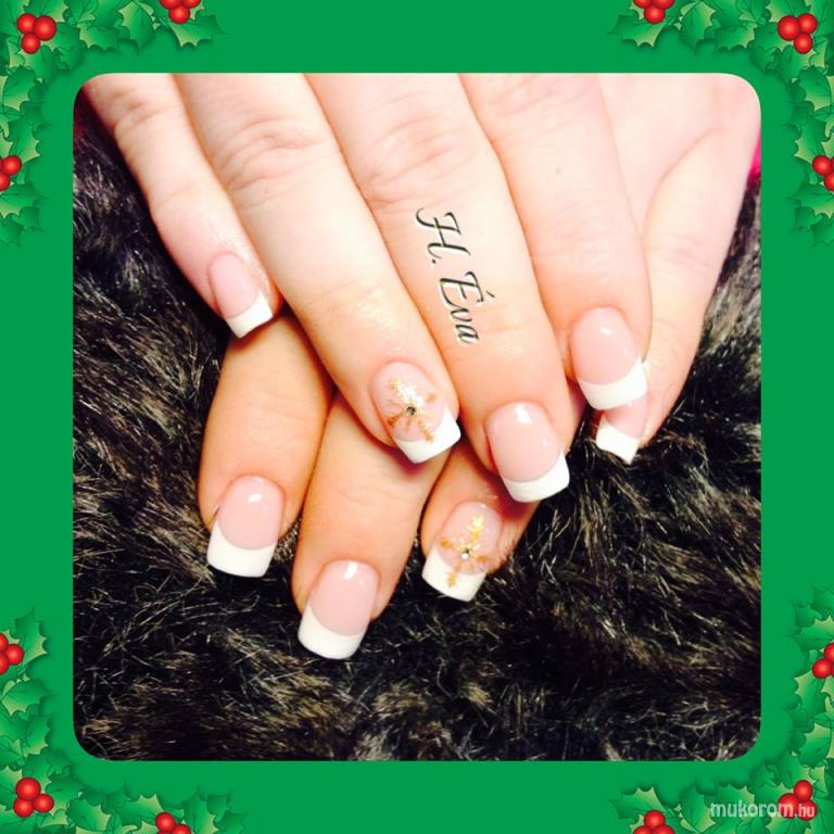 A fent látható "Francia hópihés" elnevezésű műköröm minta Horváth Éva, Budapest 14. ker.i műkörmös munkája. A kép 2015-12-14 08:37:16-kor került feltöltésre a Zselés műköröm képek kategóriába sorolva, mely immáron 40450 db Elite körömszalon által feltöltött köröm mintát tartalmaz. A kategóriában szereplő további műköröm minták megtekinthetőek a mukorom.hu weboldalon.