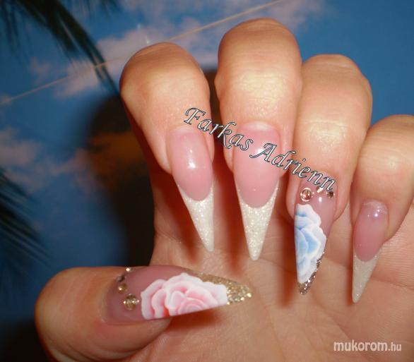 A fent látható "Egy mozdulat rózsa" elnevezésű műköröm minta Farkas Adrienn, Budapest 16. ker.i műkörmös munkája. A kép 2011-01-05 14:06:29-kor került feltöltésre a Akril körömdíszítés kategóriába sorolva, mely immáron 5330 db Elite körömszalon által feltöltött köröm mintát tartalmaz. A kategóriában szereplő további műköröm minták megtekinthetőek a mukorom.hu weboldalon.