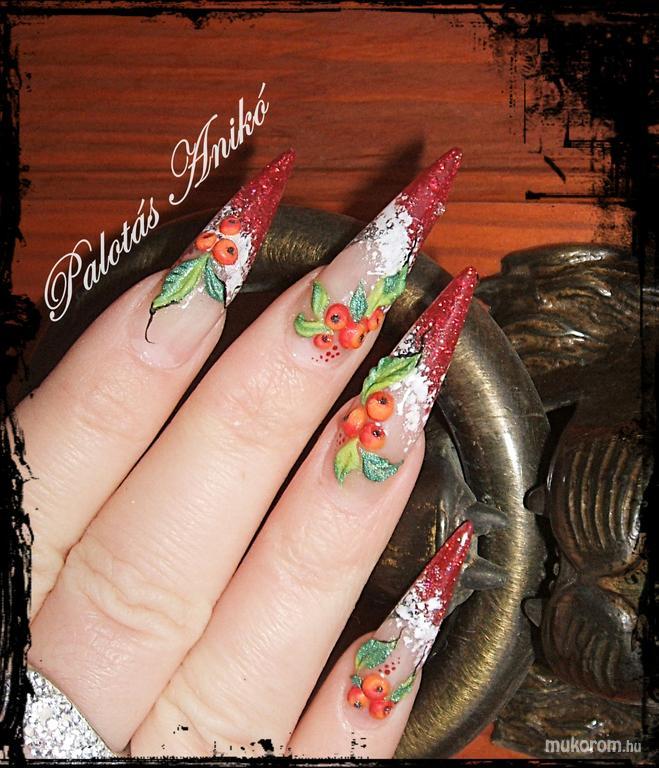 A fent látható "Bogyók télire :)" elnevezésű műköröm minta Palotásné Anikó, Budapest 18. ker.i műkörmös munkája. A kép 2011-01-06 21:12:23-kor került feltöltésre a Porcelán műköröm minták kategóriába sorolva, mely immáron 5706 db Elite körömszalon által feltöltött köröm mintát tartalmaz. A kategóriában szereplő további műköröm minták megtekinthetőek a mukorom.hu weboldalon.