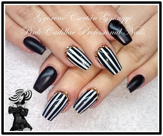 Black and white nail - Kombinált műköröm díszítés