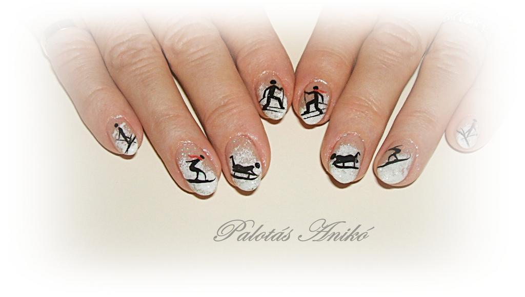Variációk téli sportra :) - Akril körömdíszítés