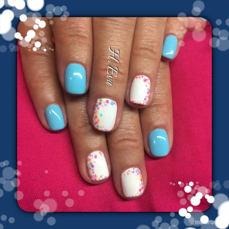 A fent látható "Pöttyös " elnevezésű műköröm minta Horváth Éva, Budapest 14. ker.i műkörmös munkája. A kép 2016-04-14 19:50:01-kor került feltöltésre a Gél Lakk kategóriába sorolva, mely immáron 16634 db Elite körömszalon által feltöltött köröm mintát tartalmaz. A kategóriában szereplő további műköröm minták megtekinthetőek a mukorom.hu weboldalon.