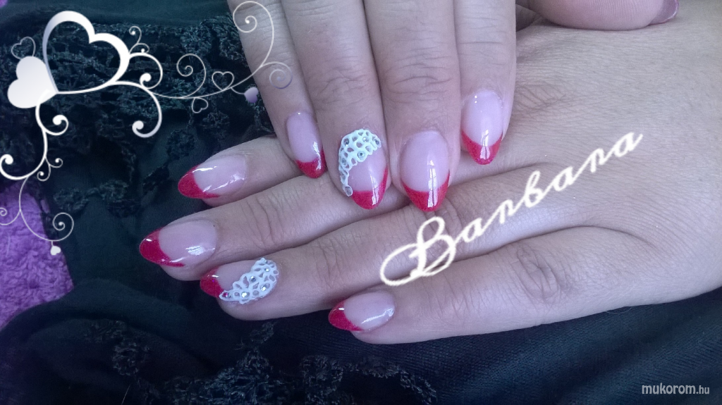 A fent látható "csipke" elnevezésű műköröm minta Huszár Barbara, Ceglédi műkörmös munkája. A kép 2016-04-14 22:15:06-kor került feltöltésre a Zselés műköröm képek kategóriába sorolva, mely immáron 40450 db Elite körömszalon által feltöltött köröm mintát tartalmaz. A kategóriában szereplő további műköröm minták megtekinthetőek a mukorom.hu weboldalon.