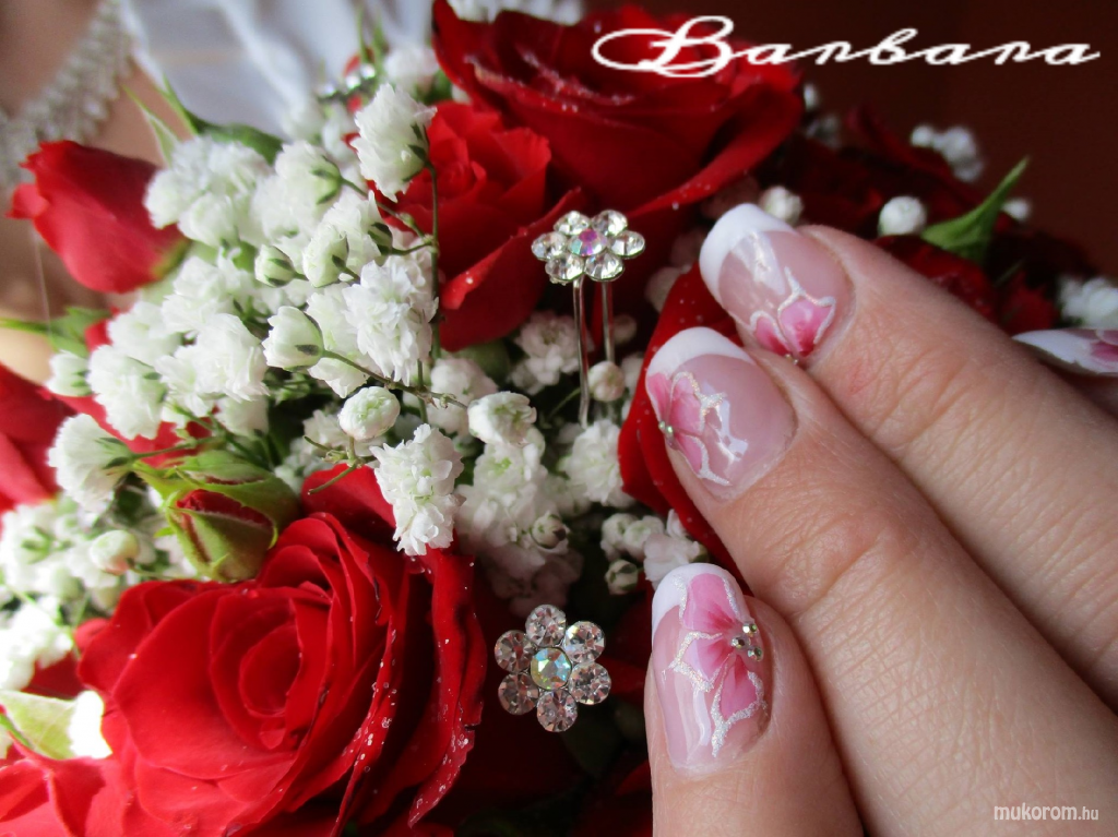 A fent látható "esküvőre" elnevezésű műköröm minta Huszár Barbara, Ceglédi műkörmös munkája. A kép 2016-04-22 19:00:37-kor került feltöltésre a Zselés műköröm képek kategóriába sorolva, mely immáron 40450 db Elite körömszalon által feltöltött köröm mintát tartalmaz. A kategóriában szereplő további műköröm minták megtekinthetőek a mukorom.hu weboldalon.