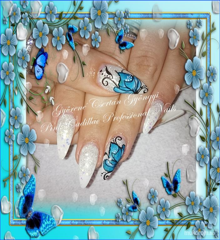 A fent látható "White and blue nails" elnevezésű műköröm minta Gyöngyi Györené Csertán, Veresegyházi műkörmös munkája. A kép 2016-08-20 11:04:16-kor került feltöltésre a Kombinált műköröm díszítés kategóriába sorolva, mely immáron 4590 db Elite körömszalon által feltöltött köröm mintát tartalmaz. A kategóriában szereplő további műköröm minták megtekinthetőek a mukorom.hu weboldalon.